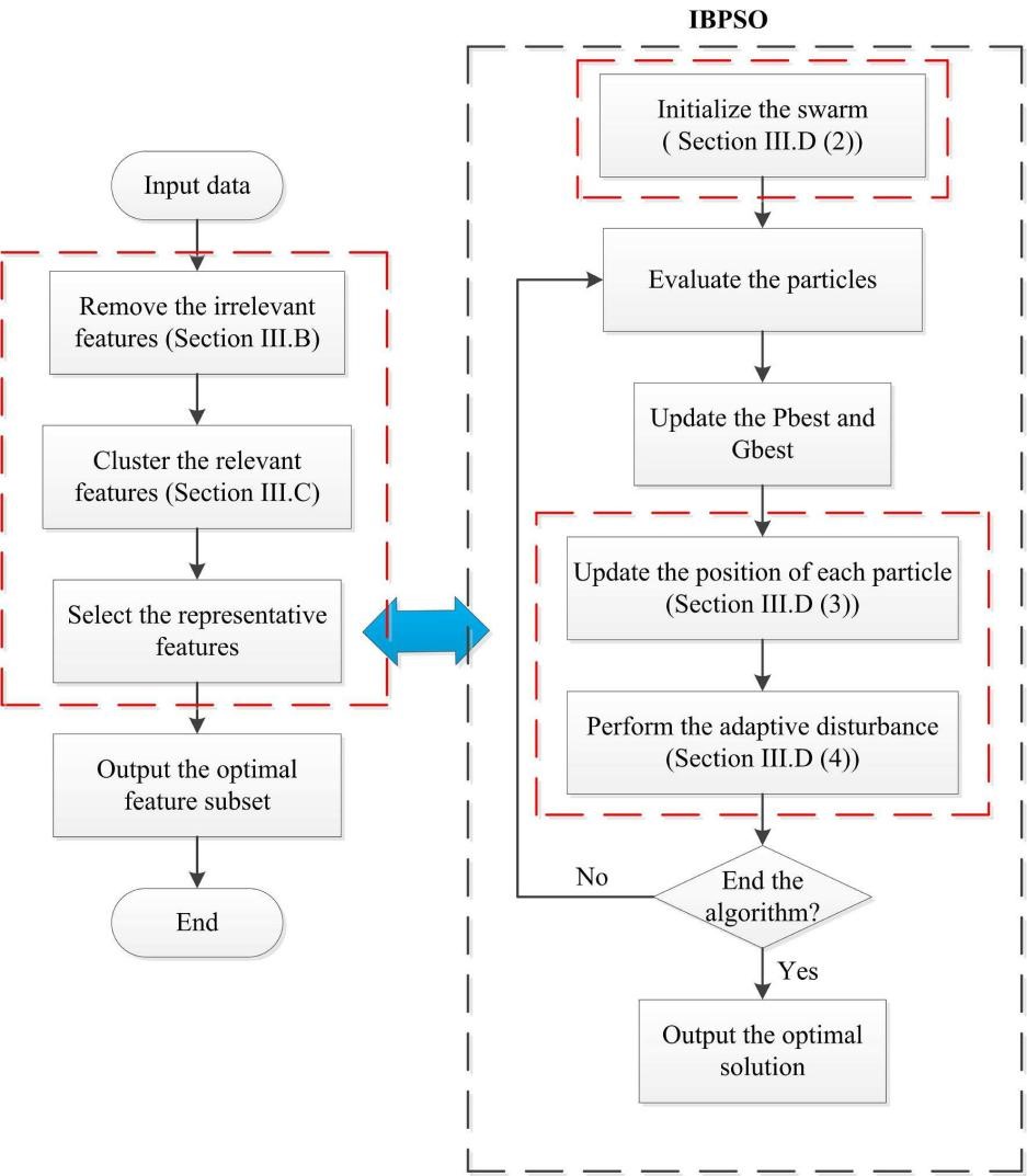 该框架将特征选择过程分为功能互补的三个阶段。第一阶段,给出一种代计算代价低的自适应过滤式特征选择方法,以删除不相关或弱相关的特征;第二阶段,提出一种相关性引导的快速特征聚类策略,将相似或相冗余特征划分到一个特征类,以减少后续粒子群的搜索空间;第三阶段,设计一种改进的整数粒子群优化算法,从每个特征类中同时选择最具代表性的特征,以形成最终的特征子集。该框架不仅可以明显缩减后续封装式进化方法的搜索空间,避免“维数灾难”,而且能够降低算法的计算代价;提出的快速特征聚类策略,不仅可以合理归类相似特征,缩减后续粒子群的搜索空间,而且能够显著降低特征相关性的计算次数;设计的种群初始化算子和自适应扰动算子,进一步提升了粒子群优化算法的搜索性能。