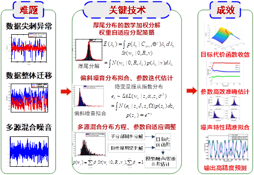 教师团队针对厚尾异常值、非对称偏斜噪声、混合噪音等复杂干扰对建模影响开展系统性的研究,创新性地提出了一系列面向复杂低质数据条件下的工业过程鲁棒高效建模算法,以h动漫网