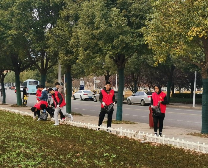 早上9:30,在团支书发放工作服装和塑料袋子之后,各成员便开始进入不显山附近捡拾垃圾。面对入口道旁草坪中的垃圾,队员们花费了半个多小时将其清理完毕。接着,志愿者们纷纷来到不显山的背后斜坡,这里的垃圾大多被风吹到了一些长有尖刺或是小枝干的灌木丛下,给志愿者们的清理工作增加了很大难度。他们利用一些较长较坚硬的树枝枝干相互配合进行拾取,队员们逐渐默契的合作同时增进了相互的友谊。11点左右,成员们都提着收集到的垃圾到出发点集合,本次志愿活动圆满完成。