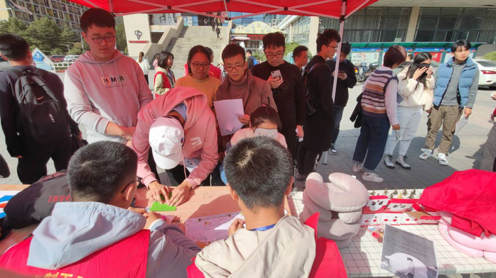 锋行青年志愿者协会于桃苑食堂,松苑食堂门口开展了“白手杖节”活动。