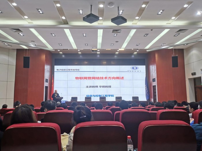 会上,各位教授、专家电子信息工程的老师们不仅从各方向的实际应用、知识框架与课程内容、工作前景与学习设备等方面展开了叙述进行了介绍,还并结合本方向特点进行了深入描述。其中,孙彦景教授率先发表演讲,强调了在校企结合方面,电子工程方向帮助学生在实践中历练成长,所提交的成果惠及教师,提升教师教学水平,从而又反馈学生的正循环结构,鼓励学生们参与到其中来。通信方向的宋金玲教授主要从实用性着手,通过描述介绍通信技术在生活中的应用,吸引学生参与选报。王艳芬教授作为信息处理代表,向同学们阐述了信息处理方向与各学科间的紧密联系,说明了各个方向的交叉与类似,表示欢迎大家根据自己的兴趣选上自己心仪的方向。随后,华钢教授以自己多年从事电信行业的经验告诉同学们要养成终身学习的习惯,与时俱进,方能不落后于世界。微电子的刘海教授最后发言,他用通俗易懂的的话语告诉了同学们微电子方向的光明前景,以诙谐的语言讲述了学科的难度,同时激励大家刻苦学习。徐永刚教授在最后也进行了总结,并对具体选课操作做出了讲解,帮助同学们顺利选课。