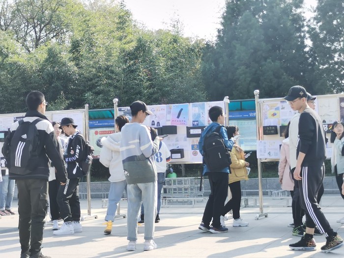 中午,各班的班服、班徽、班旗设计图与设计方案于青春广场展出。此次展出主要目的为投票评选,全校师生均可参与投票。同学们凭借学号或校园卡限领一张投选票,对自己喜欢的作品进行投票。,可以看到h动漫网