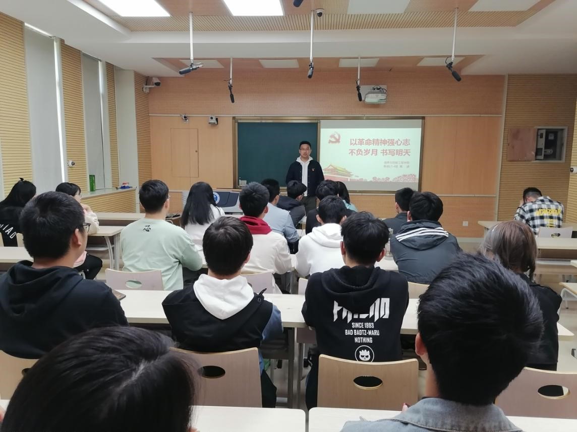 电子信息类17-04团支部在信控楼A317举行“学党史、强信念、跟党走”系列团日活动,由团支部书记高源讲述以“以革命精神强心志 不负岁月 书写明天”的主题团课。团建指导员祁昊宇老师出席活动,支部全体成员参加。