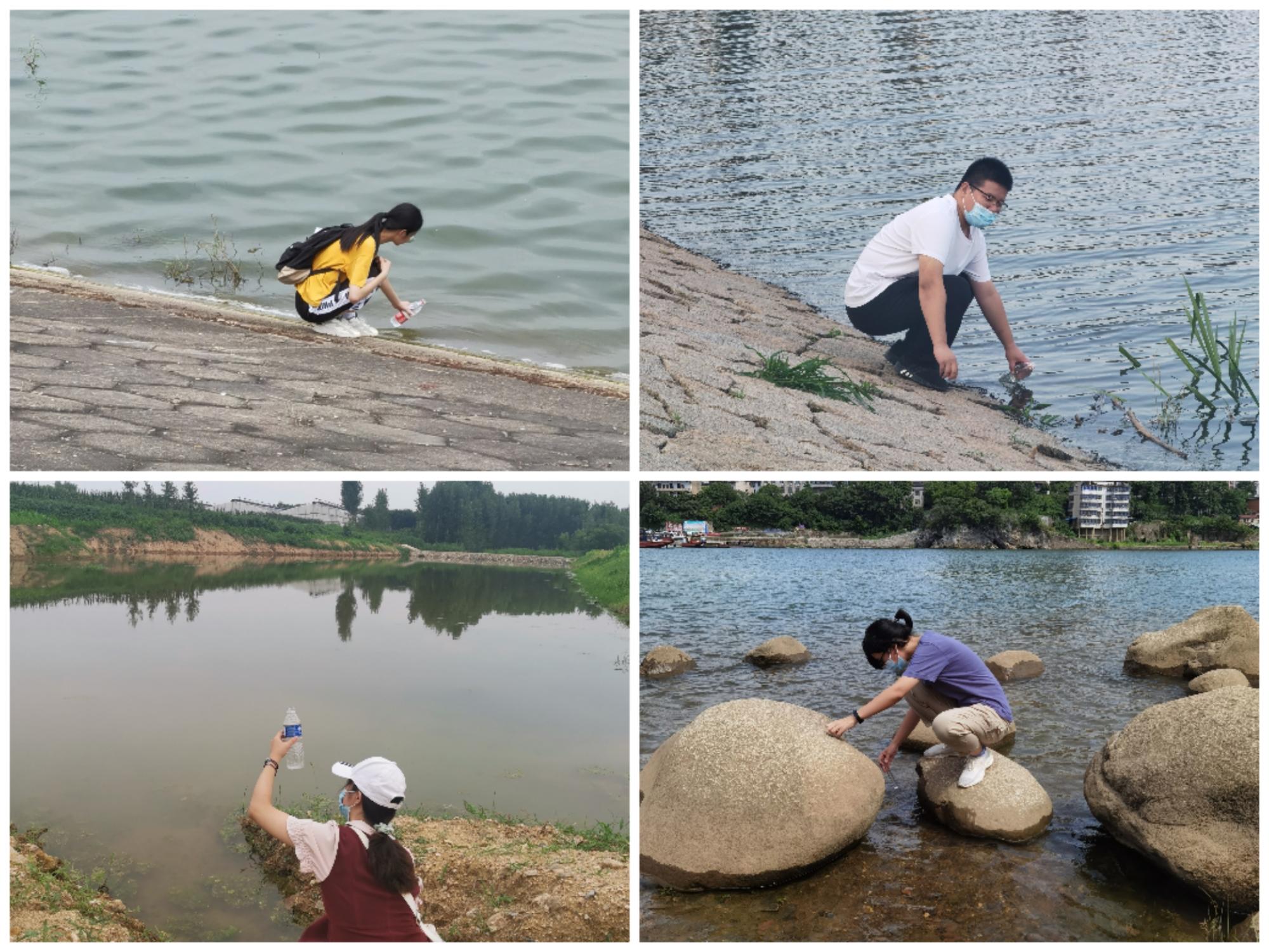 8月14日,实践团成员廖积欣和马晓斐分别在湖南湘江和山东大汶河开展社会实践活动,她们各自前往湘江和大汶河污水排放口上游100米处、污水排放口附近和污水口下游1000米处进行取水,湘江和大汶河两处水样整体清澈,没有异味。随后,两人通过试纸对样品进行PH值的检测。经过初步检测,湘江和大汶河排放口上游下游及排放口处三处水样整体PH值差异不大,都接近中性。