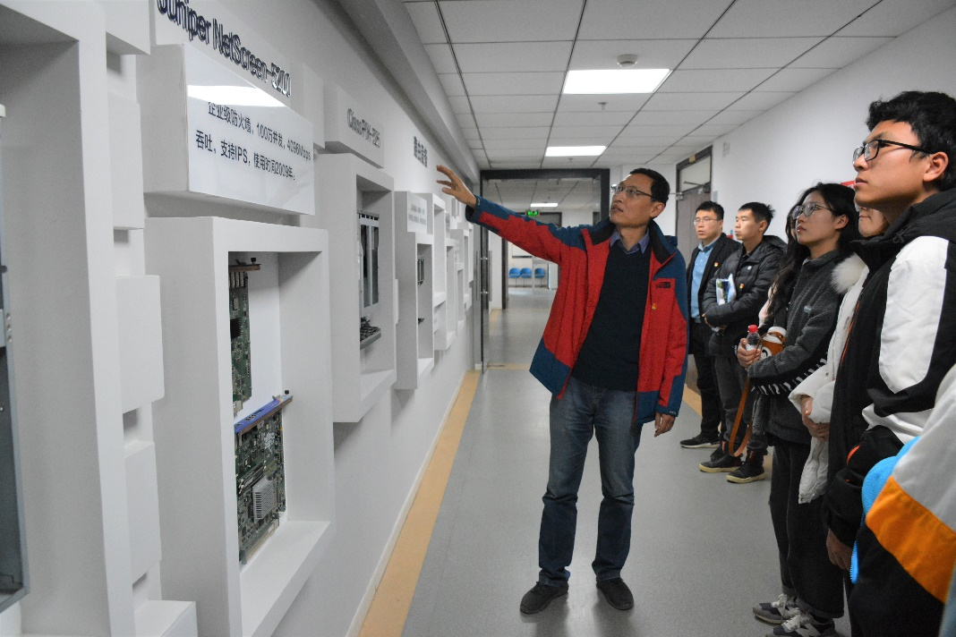 启动仪式结束,作为共建活动的内容之一,信息化处党支部副书记陈越带领团支部成员参观了信息化处机房,向同学们详细介绍了学校网络设施与存储设施建设的发展、变迁和最新进展,加深了同学们对电子信息领域的专业认知。