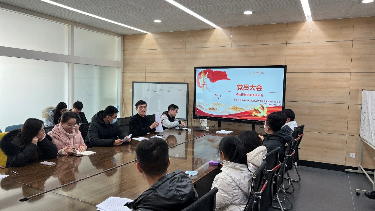 研究生第一党支部于12月21日下午14时在教四400召开支部大会,讨论发展对象陈巡、赵志伟、张冲同志入党问题,此次会议由仝光明同志主持。