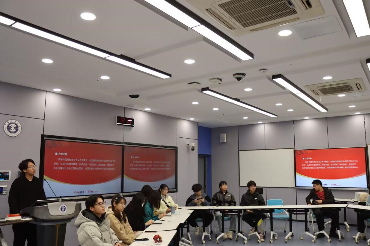 首先,团支部书记程嘉晟简要介绍了本次会议的背景、目的和内容。通过对党的二十大报告的选取摘抄和典型内容学习,支部成员们深刻理解了党的二十大精神的培养目标和深刻内涵,认识到,作为新时代青年要听党话、跟党走,将创新学习与积极实践相结合,顺应新时代,听从新使命,展现新作为,争做堪当重任的时代新人。接下来,程嘉晟组织支部成员进行书记述职、个人自述、团员互评、民主测评和组织测定五项活动,召开专题组织生活会民主评议团员。最后,程嘉晟总结了2022年团支部开展的主题教育等各项工作,全体团员认真反省自己在责任担当和职责履行上存在的问题,同时诚恳指出团支部其他团员存在的不足,并提出改进建议。