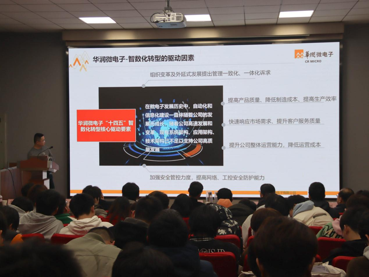 最后,华润微电子人事部负责人向同学们介绍了公司的人才培养与发展方案,以及公司的训练营活动、学习与创新中心,鼓励同学们进入华润微电子学习发展。