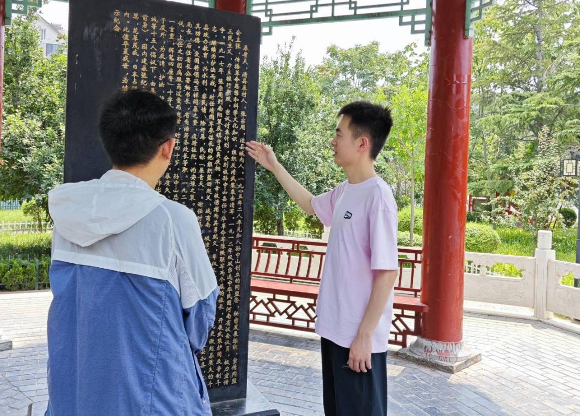 7月26日,实践团成员董嘉乐到河南省新乡市卫河公园暴张纪念亭参观学习。参观过程中了解到,新乡暴张公园是为了纪念我国近代民主革命时期的两位先烈暴式彬、张希圣而修建的。实践团成员主动向其他游客讲解张宗周、暴式彬烈士的事迹和他们的红色革命精神,游客在了解实践团的来意和红色故事后表示,当代人应加倍努力,奋发图强建设祖国,方不负先人挥洒的热血。