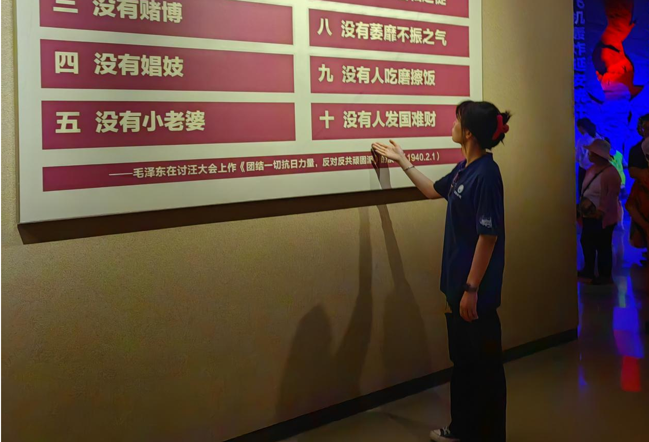 7月25日,实践团队成员刘凡宇踏上了延安之行,在参观枣园、宝塔山、延安革命纪念馆和杨家岭革命旧址后,她又与五十年老党员边先生进行深入交流。边先生通过亲身经历向实践团队讲述了这些年来的发展变化,对于改革开放以来发生的翻天覆地的变化,他感慨万千。在与边先生的交流中,实践团成员更加深刻地感受到了当代青年人所承载的期望,深入了解并体会到革命精神、延安精神的力量和价值。