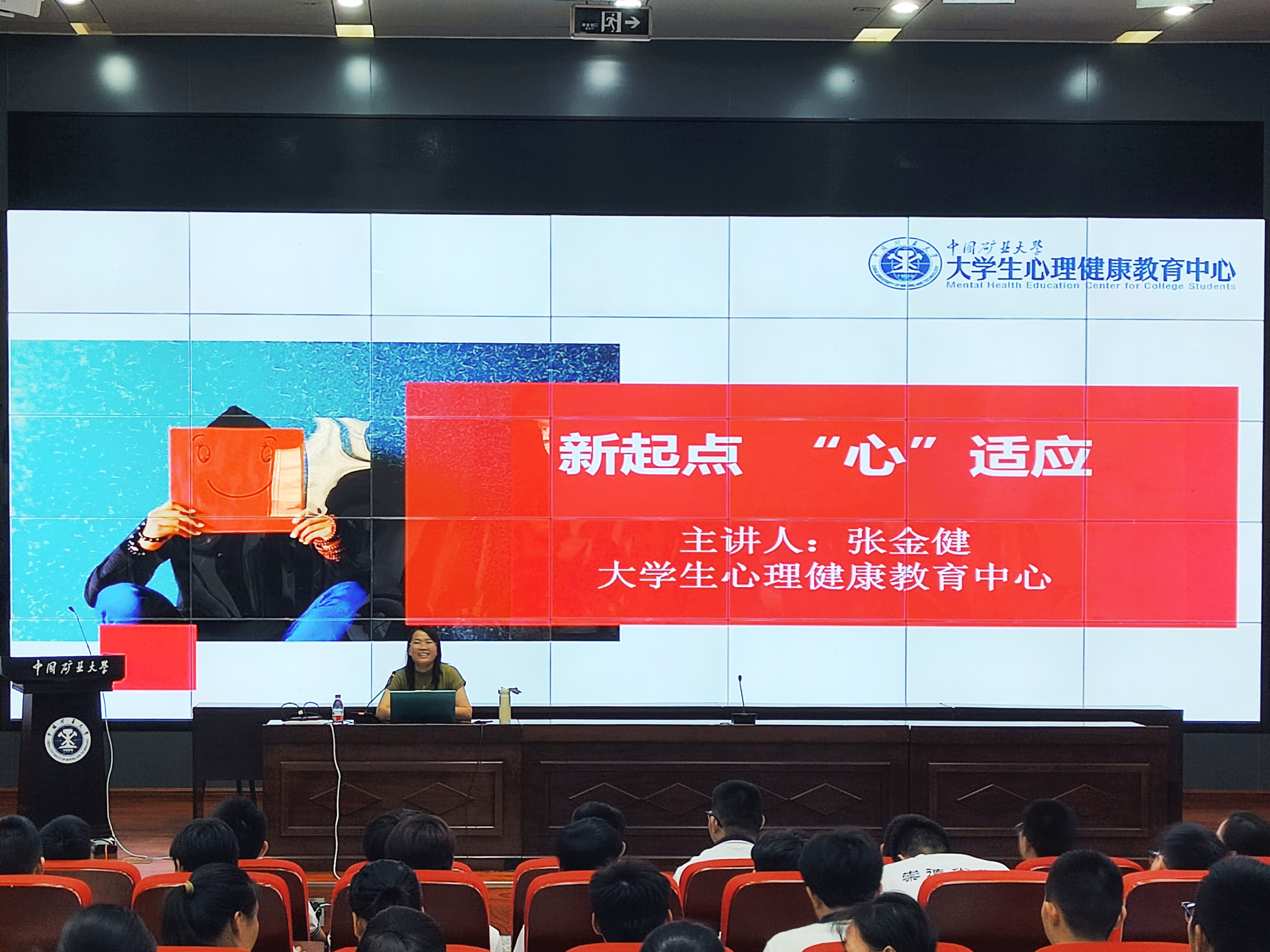 表示祝贺,她从“新起点”的角度切入,勉励同学们在大学新的阶段、新的起点做好生涯规划。张老师以生动形象的案例分析了大学生常见的环境适应、人际适应、学习适应和恋爱适应等问题,她建议同学们通过心理健康维护的“五个一”,即制定一个目标、养成一个习惯、发展一个爱好、形成一种思维、寻求一种支持,尽快适应大学生活,保持良好的身心状态。同时,她还介绍了学校大学生心理健康教育中心的基本情况和预约心理咨询支持的相关方式。