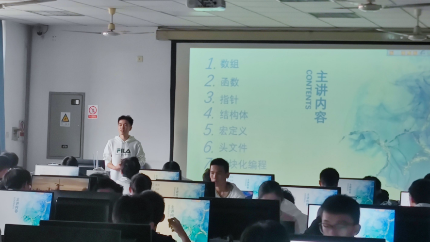 电子协会开展了C语言课程培训。本次课程由电子协会嵌入式开发部董嘉乐学长主讲。