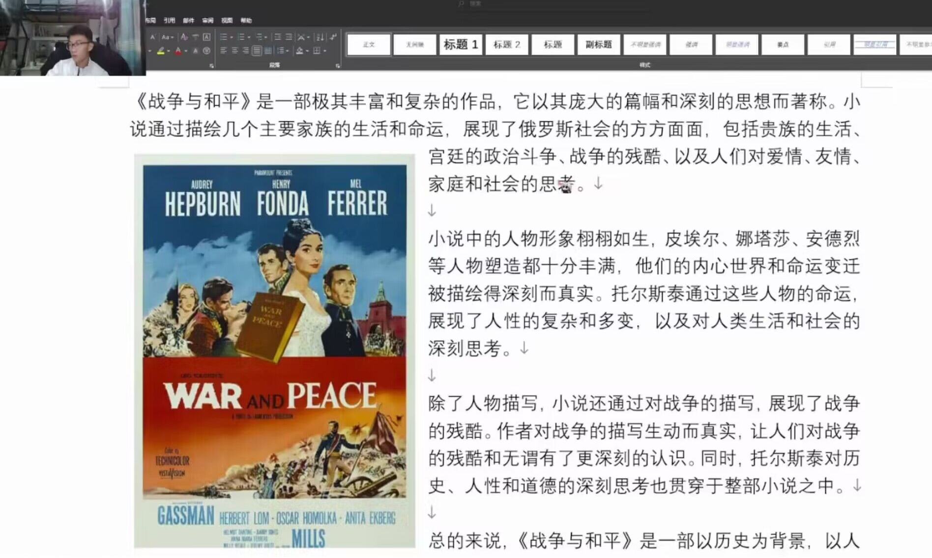 全体学生,活动前期通过海报、公众号等方式进行宣传。参与者须选定一本中外名著并制作阅读视频,在视频中除介绍书籍的内容和推荐理由外,其余内容由同学们自由发挥,允许自由配乐,给予同学们充分发挥的空间。同学们分享的书目涉及题材广泛,内容丰富多样。有同学推荐了列夫·托尔斯泰的长篇小说《战争与和平》,内容富有深度,引人深思;也有同学推荐了充满哲思、感人肺腑的经典散文集《我与地坛》,从中感受史铁生身残志坚的精神和细腻丰富的感情。