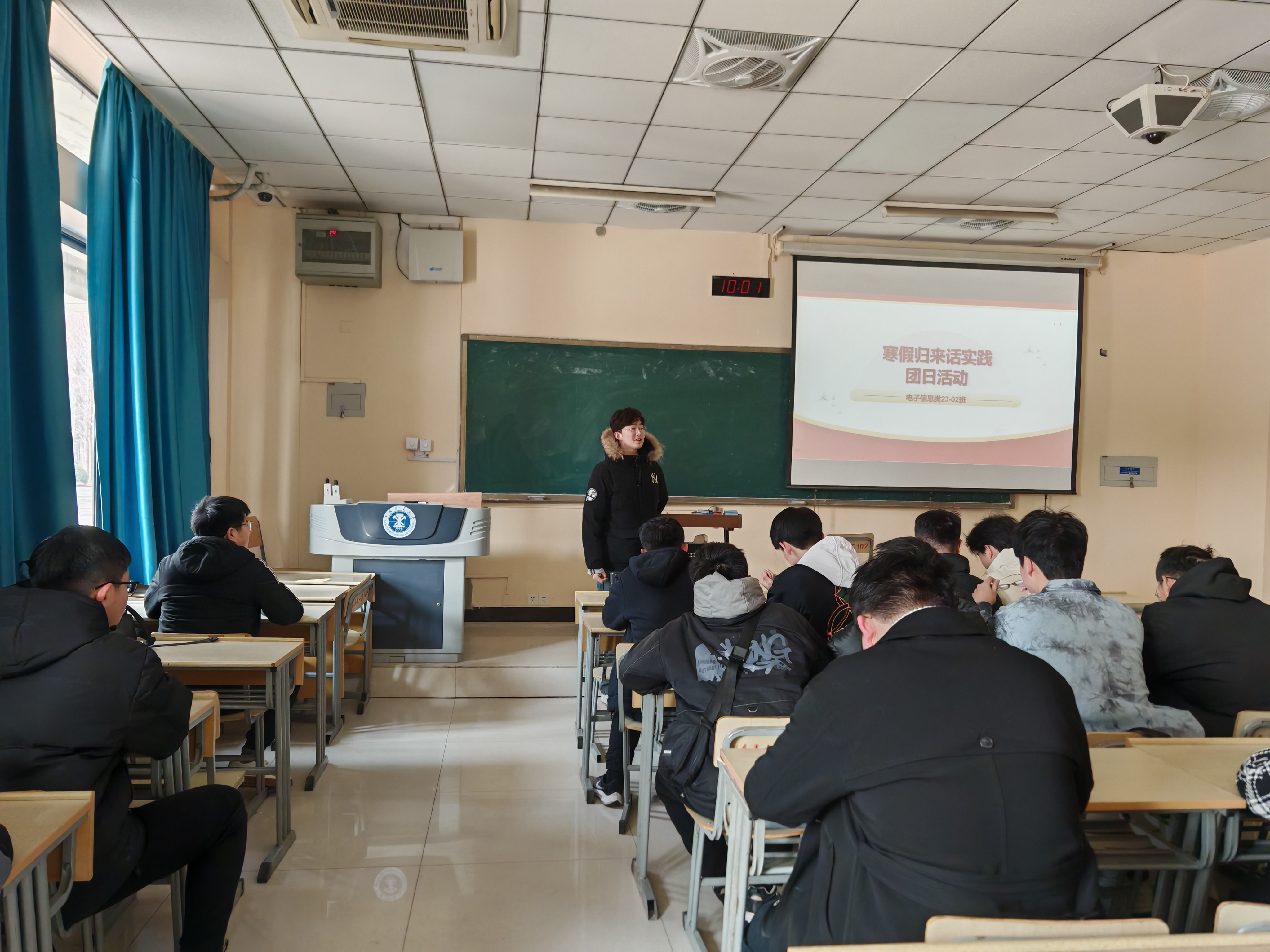 电子信息类23-02班在博学4号楼C106开展了“寒假归来话实践”主题团日活动。班主任王浩宇老师和班级全体同学参加本次活动。