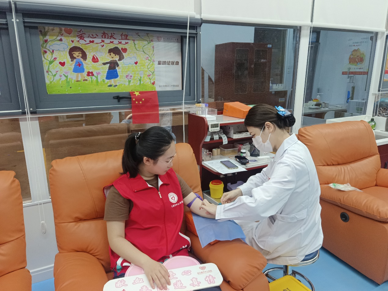 7月26日,张馨文同学在工作站点进行了无偿献血体验和调研。在亲身体验无偿献血后,增进了对广大献血者的理解,体会到了献血的重要性与意义。随后,张馨文前往附近街区进行调研,就对无偿献血的条件和意愿这一话题对市民进行调查与访谈。调研结果显示,许多人对于献血过程中的安全性和利益认知不足,存在一定的疑虑和顾虑,公众的献血意识有待提高。通过相关人员对市民的宣传和讲解,当天站点共有五位献血者参与无偿献血。