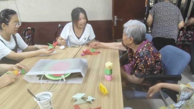 7月12日上午,队员们再次拜访老年公寓,与另外的志愿者合作,共同帮助老人们学习如何使用智能手机,还介绍了可以修复老照片的人工智能等应用。之后又与他们共同制作手工,通过聊天的方式来了解他们的故事,排解心中的寂寞。