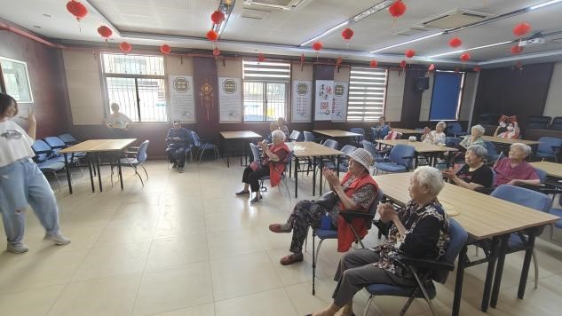 7月11日上午,队员们来到了博济老年公寓,在与工作人员对接后承包了老人们上午的娱乐活动。学生轮流带领老人们进行了许多轻松有趣的小游戏,例如有助于健康的手指操,使老人们充分活动了大脑与身体。成员们还与老人探讨经典电影、共同为老人们演唱经典歌曲、表演舞蹈,让他们在欢乐愉悦的氛围与熟悉的旋律中放松身心。