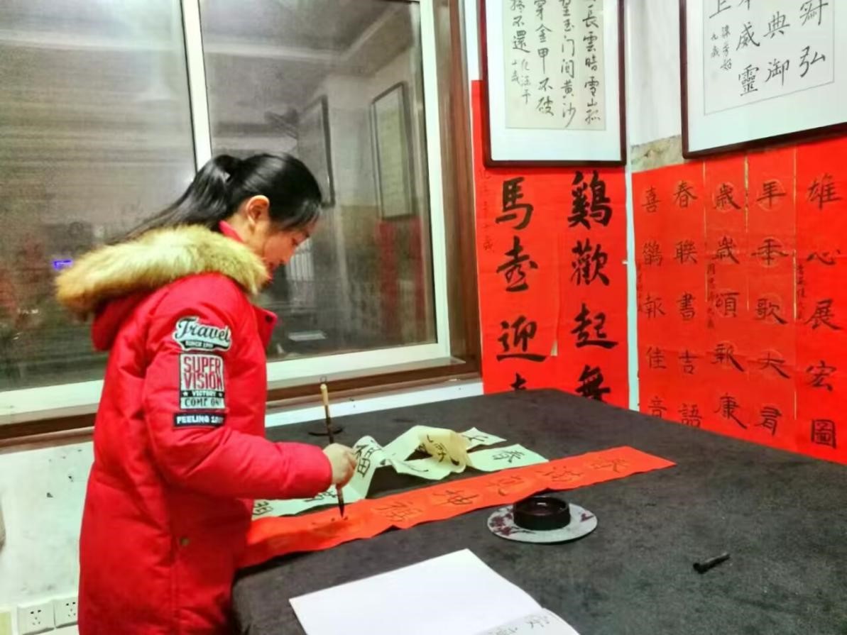 于家中写春联