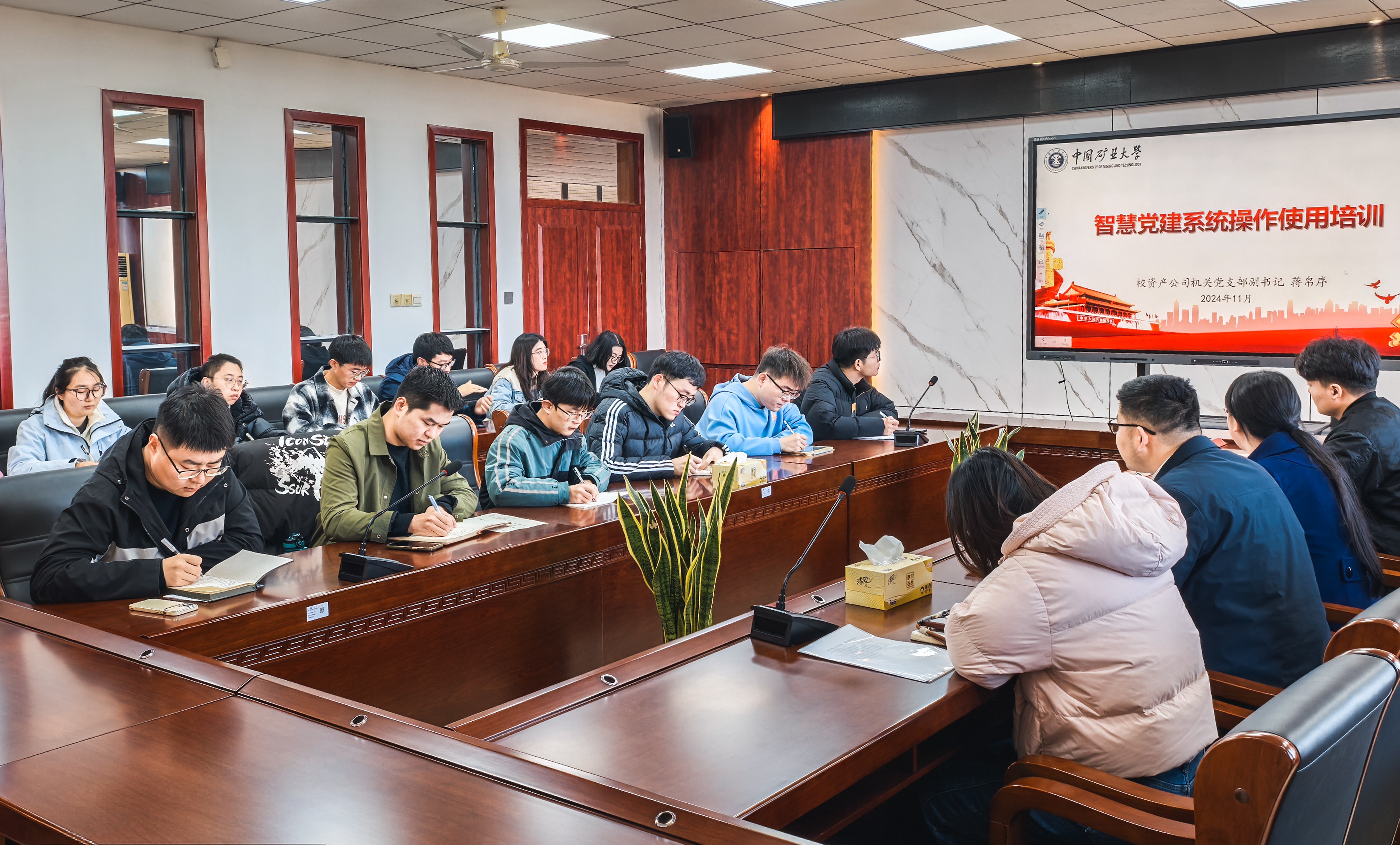 在A311会议室召开智慧党建系统培训会。学院党委副书记翟文艳、专职组织员厉功卿和学生党支部书记参加会议。会议由厉功卿主持,校资产公司机关党支部副书记蒋帛序受邀作智慧党建系统使用培训。