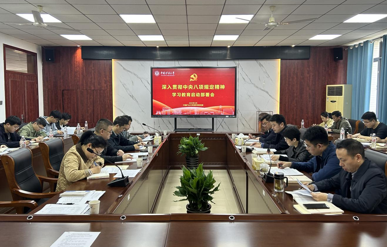 会议传达学习了学校党委关于在全校开展深入贯彻中央八项规定精神学习教育的要求,对学院开展学习教育工作进行安排部署。程德强在动员讲话中指出,开展深入贯彻中央八项规定精神学习教育,是巩固深化主题教育和党纪学习教育成果、纵深推进全面从严治党的重要举措,全院上下要提高政治站位,充分认识此次学习教育的重大意义,准确把握开展学习教育的目标要求,按照学校实施方案,一体推进重点任务,全面落实各项工作安排,确保学习教育取得实效。