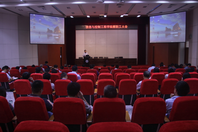 在学院A101报告厅举行全院教职工大会,学院全体教职工参加了会议,会议由党委书记吴瑜主持。
