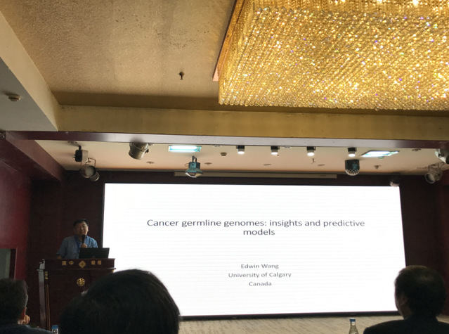 开幕式后,Edwin Wang教授为大家进行了题为“Cancer germline genomics: from biological insights to genomic predictions”的报告,详细介绍了他们在癌症遗传基因组学方面的最新重要研究成果。崔庆华教授为大家做了题为“microRNA 和 lncRNA 重要性计算”的报告,介绍了他们在非编码RNA方面的科研成果。骆嘉伟教授和周丰丰教授分别作了题为“人工智能在复杂疾病发病机理分析中的应用”和““弱弱得强”,浅析特征选择算法的深挖空间”的报告,为大家展示了他们在生物信息学算法方面的研究进展。陈兴教授作了题为“大数据时代下基于网络算法和机器学习的生物信息学研究”的大会报告,介绍了他所领衔的团队在矿大这两年多取的一系列学术成果。下午,南京林业大学教授业宁,扬州大学教授张韬,江南大学教授戴晓峰,东南大学副教授涂景,苏州大学副教授胡广,淮海工学院副教授卢辰,新格元(南京)生物科技有限公司范珏博士,南京航空航天大学的刘海洲博士,h动漫网