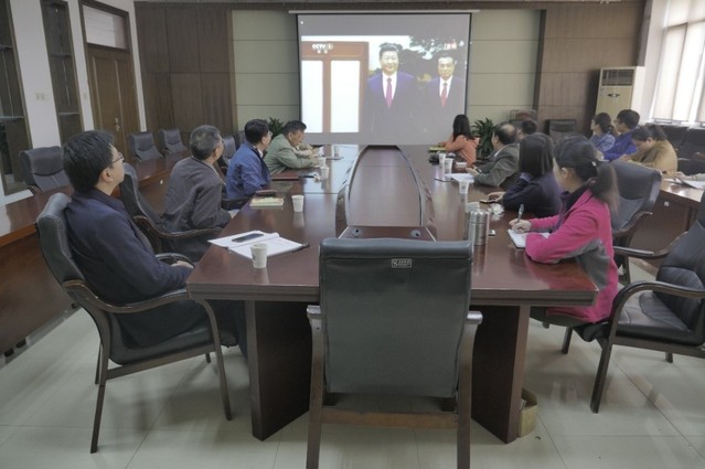 党委中心组成员与机关党支部全体党员于学院楼A311会议室集中收看十九届中央政治局常委与中外记者见面会直播。