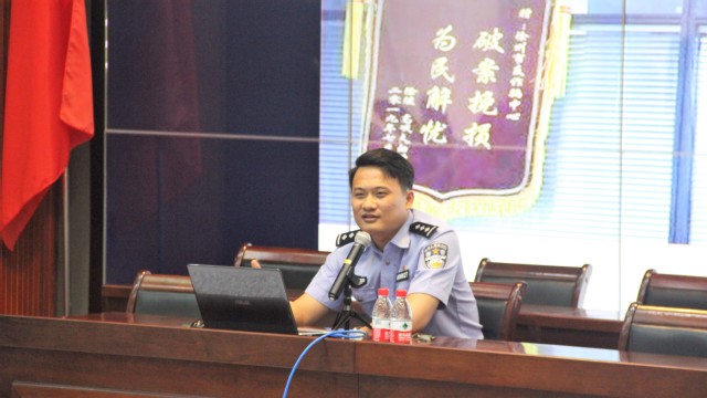 于学院楼A101报告厅举办2020级新生通讯网络安全教育专题讲座,本次讲座邀请到徐州市公安局反通讯网络诈骗中心副主任李琦主讲。