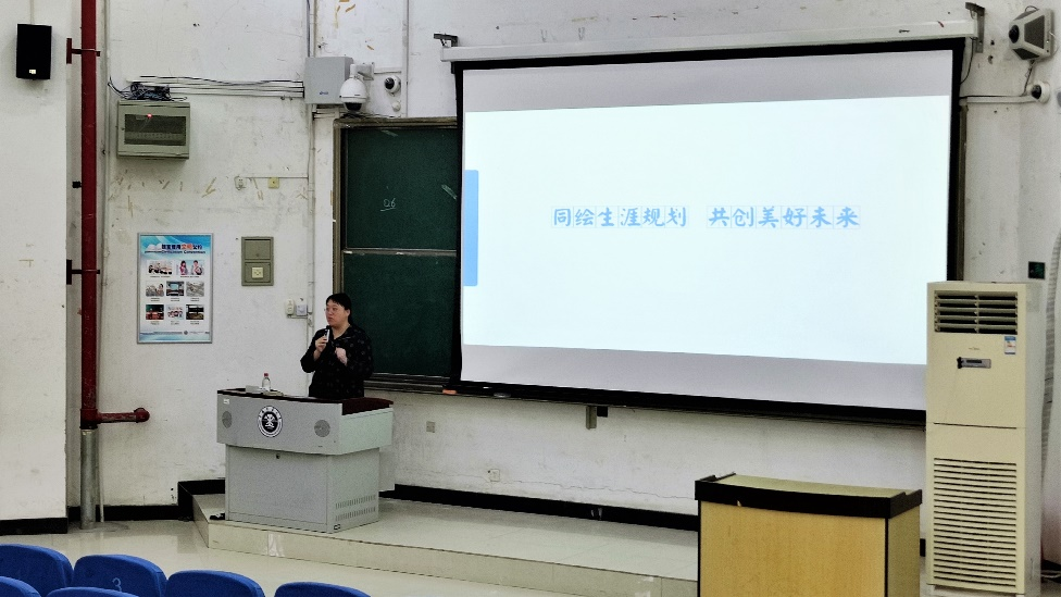 翟文艳副书记以丰富的生涯规划指导经验,从阐述职业生涯规划的概念、意义入手,围绕职业生涯规划中的自我认知、职业认知、目标确定、规划与实施和反馈修正这五方面内容作了题为“同绘生涯规划,共创美好未来”的主题讲座,详细讲解了职业生涯规划各个环节的实施办法,并引用往届同学的优秀案例进行生动的解释说明。她强调凡事预则立,不预则废,生涯规划是以既有的成就为基础,确立人生的方向,提供奋斗的策略。她提醒同学们要端正态度,积极探索,利用职业生涯规划大赛的机会,以赛促学、以赛促建,实现职业规划目标清晰定位。
