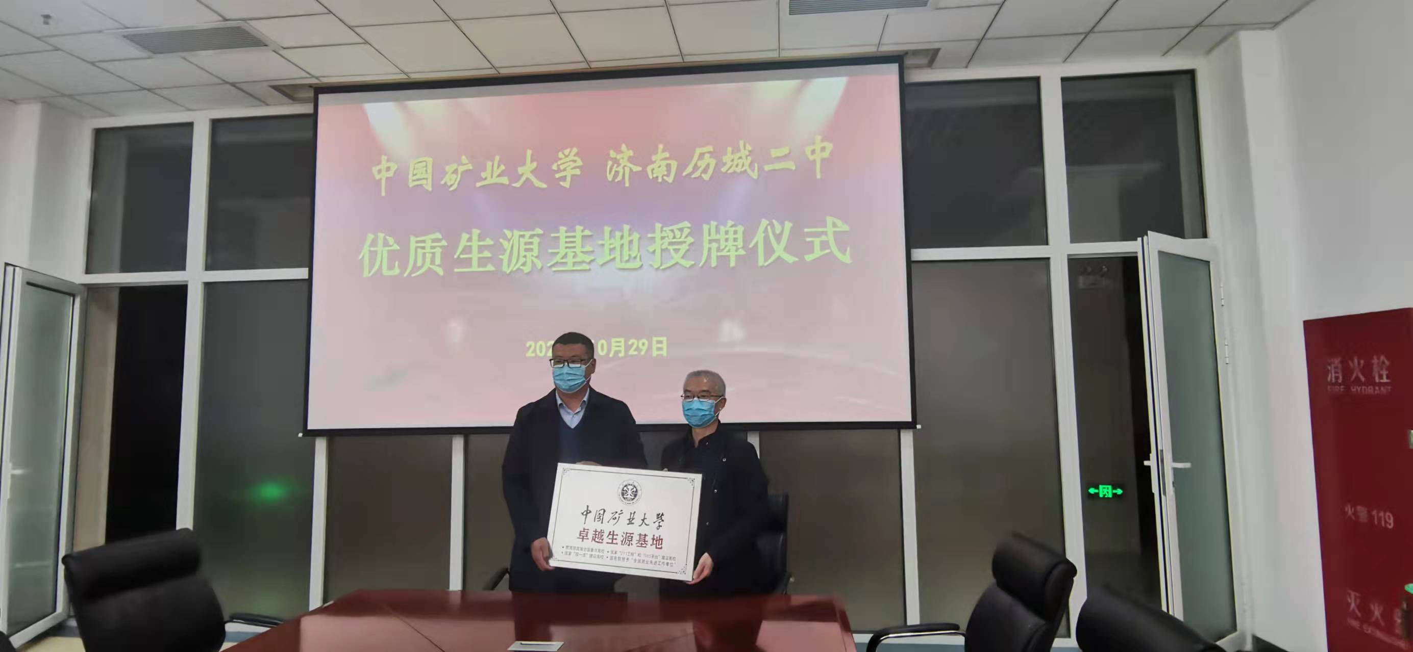 教师卢兆林一行赴山东济南历城第二中学开展卓越生源基地建设工作。工作前期学院经由卢兆林老师与其高中母校历城二中进行了沟通联络,达成卓越生源基地建设意向,当日李世银副院长带队赴中学进一步深入开展卓越生源基地建设工作,举行基地的签约授牌仪式并与中学校长、书记和高三年级主任等学校主要领导和老师进行了座谈。