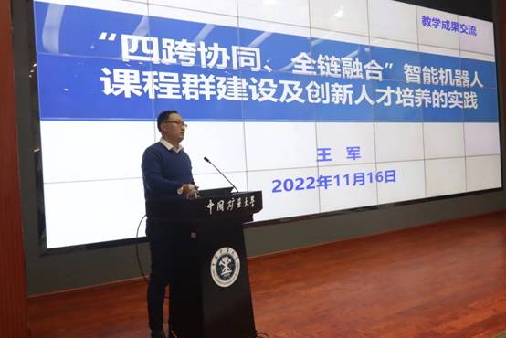 随后,学院四位教师以专题报告的形式,对教育思想大讨论典型案例进行了汇报。学院教学副院长程德强以“学训赛同行”和“产研创贯穿”的实践教育模式,系统性介绍电子信息类专业创新人才实践教育体系的构建路径;学院党委副书记翟文艳结合学院“三全育人”综合改革试点建设工作,提出构建“四化·四拓展·五完善”的育人体系,全向度助力学生成长成才;王军教授结合智能机器人课程建设和竞赛培育,以强化创新人才培养为导向,总结出“四跨协同、全链融合”的新型育人理念与模式;张晓光教授依托国家能源战略和电子信息产业变革背景,结合电子信息专业课程特点,汇报了一流专业核心课程群的教学改革探索和实践。