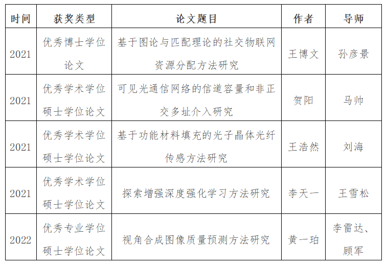 2018级电子与通信工程专业黄一珀的学位论文《视角合成图像质量预测方法研究》(指导教师:李雷达、顾军)位列其中。