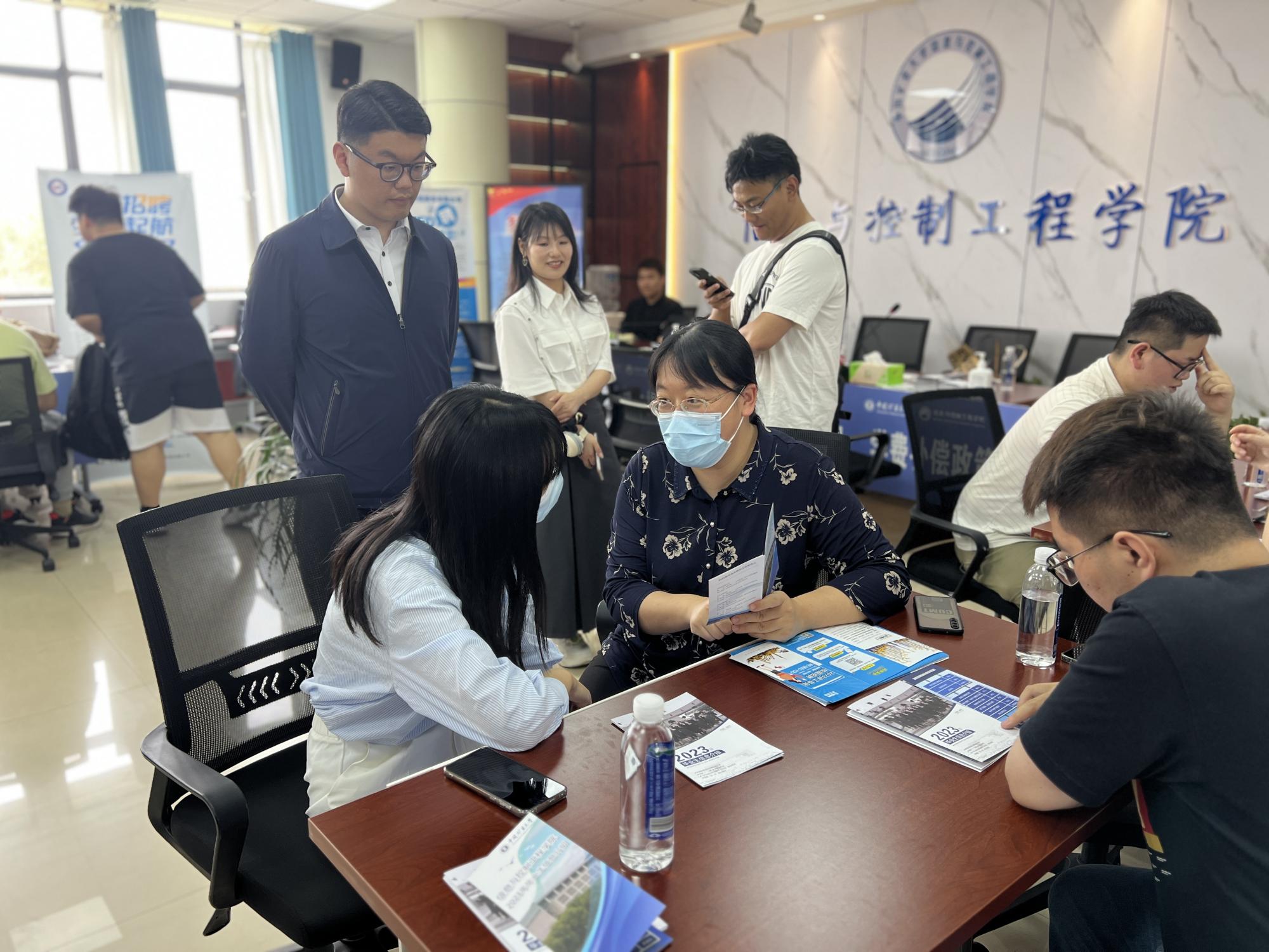 学院党委副书记翟文艳,2023届毕业班辅导员李鸣轩、牟晓博、贾新颖全程参与双选会,与用人单位洽谈、沟通,指导、推荐毕业生就业,并面向毕业生开展简历门诊、面试技巧提升、职业发展规划等就业能力提升指导。