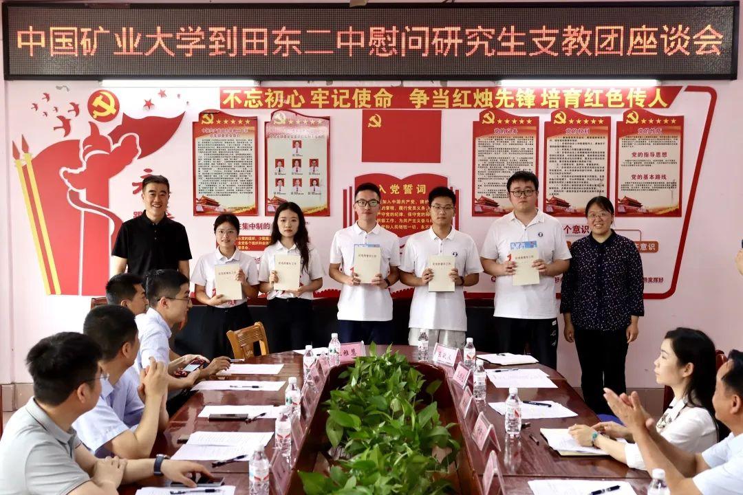 的来访表示欢迎和感谢,对矿大研支团六年来对田东二中的教学支持表示肯定与感谢,希望未来能够更加深化两校合作,协力为田东县教育事业做出新的积极贡献。