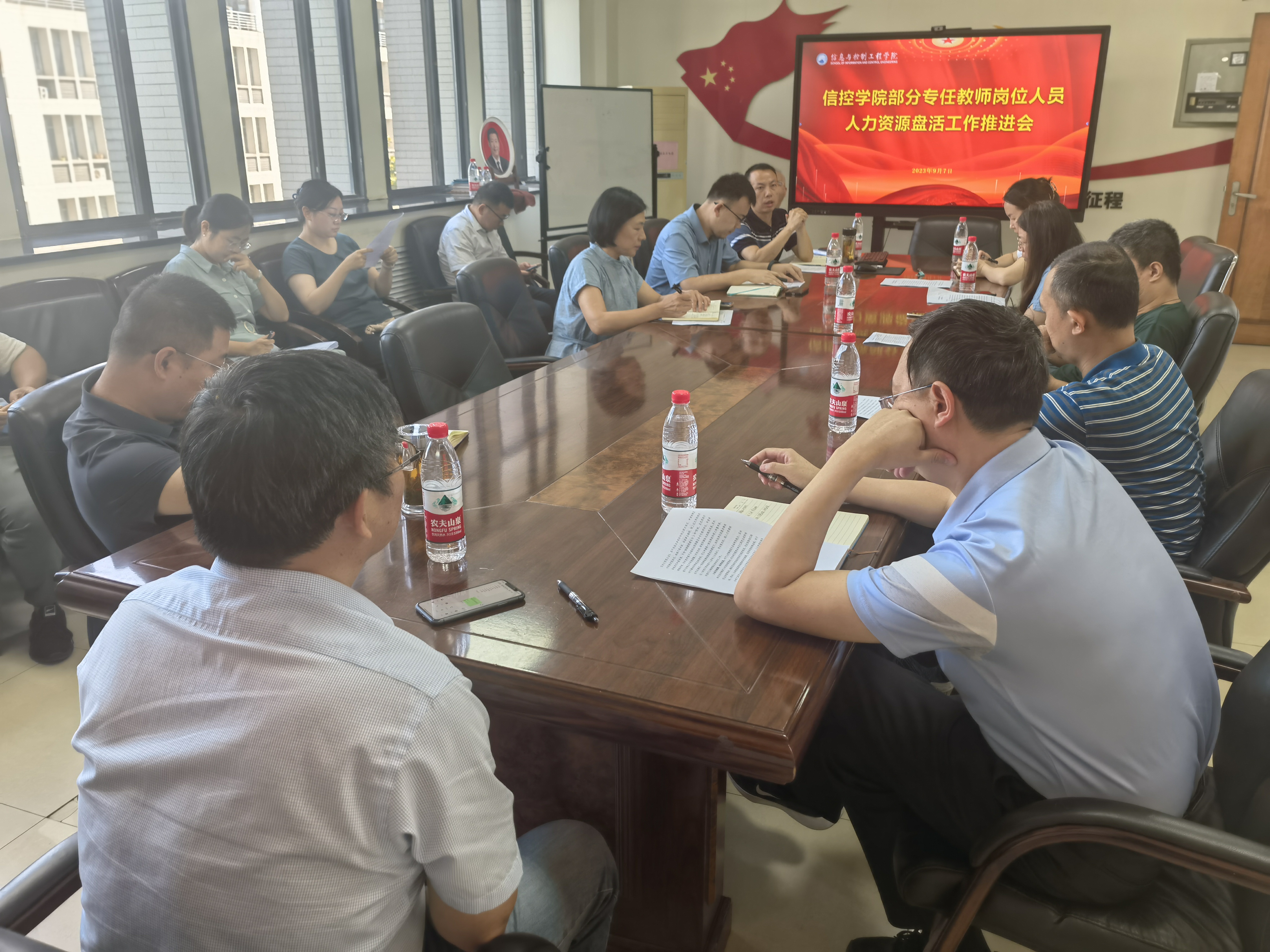 认真贯彻学校人才强校战略,积极落实学校关于教职工校内转岗、聘用制专职教学型岗位管理等文件要求,通过一体化推进“倾心引才、悉心育才、精心用才”师资队伍建设工作,全面助力教师职业成长与发展。为提前谋划和更好促进教师职业发展,9月7日上午,学院在B313会议室召开部分专任教师岗位人员人力资源盘活工作推进会。副院长李世银、刘海、陈平,校人力资源部人事科科长孟子浩,学院各系主任、部分专任教师参加了会议。会议由陈平主持。