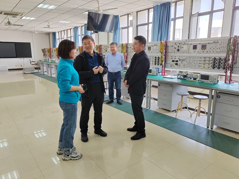 程德强介绍了学院历史沿革、学科建设、师资队伍与省部级教学科研平台建设、“十四五”中期进展等情况,陪同考察了校友照片墙、楼宇文化、电工机组实验室、先进自动化技术实验室、电路实验室等,并介绍了学院面向全校工科非电专业学生开设电工学课程的教学组织、创新做法以及电子电路开放共享综合实验平台建设等情况。