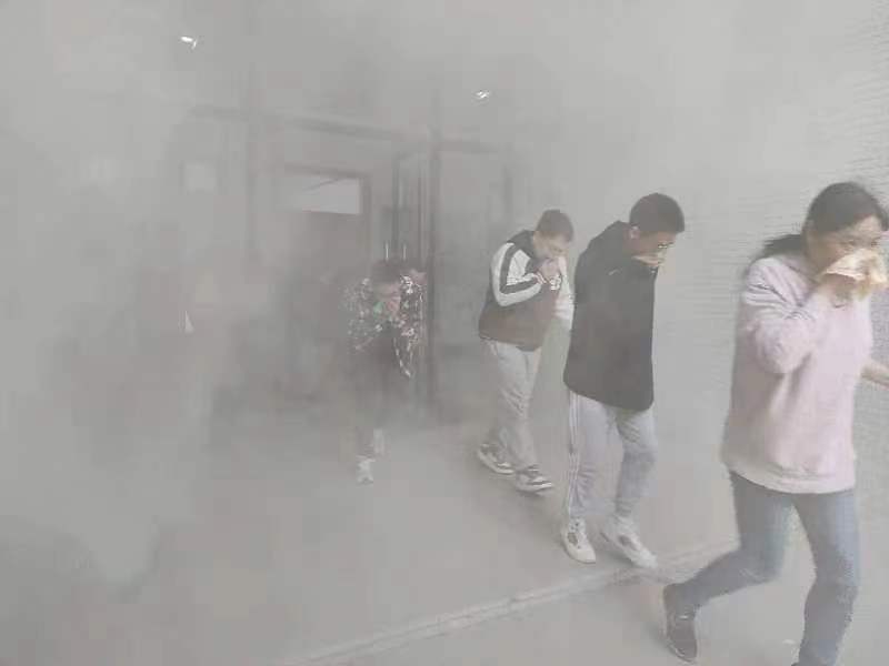 活动前,保卫处王锐老师讲解了办公室、实验室突发火情的逃生注意事项及急救知识。依据真实场景,在各个楼层模拟释放烟雾并拉响警报,各岗位人员迅速响应,学院应急疏散引导员按照制定的预案迅速组织师生疏散逃生。师生用湿毛巾捂住口、鼻,按照应急疏散指示标识和既定的应急疏散路线,有序地疏散到楼外安全区域。活动结束后,实验中心主任张晓春对本次演练进行点评,并向师生介绍消防知识、逃生知识。