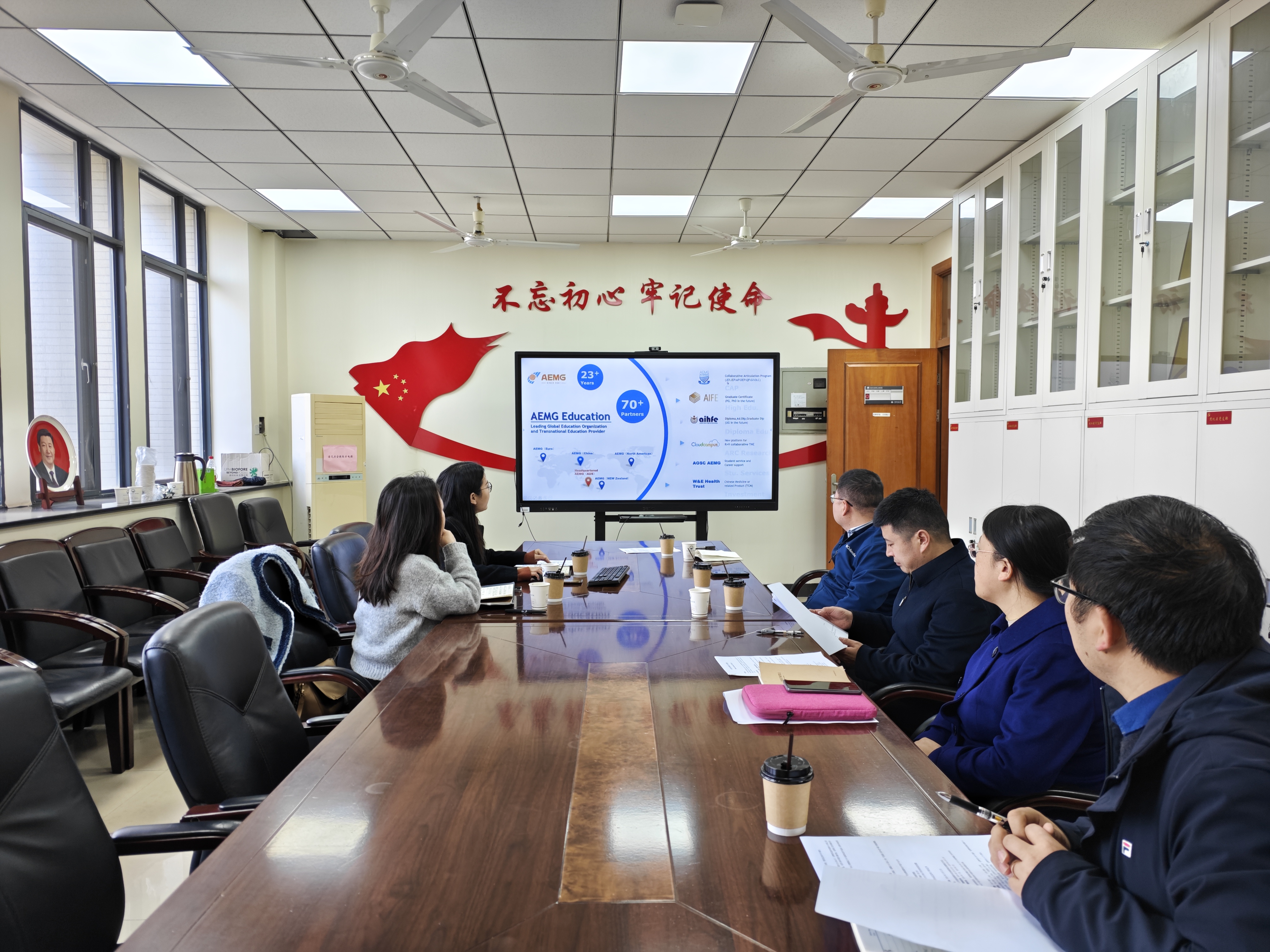 陈静和仇颖洁简要介绍了AEMG教育集团的基本情况、所运行的学生国际交流项目和为学院国际化教育发展所能提供的相关资源。