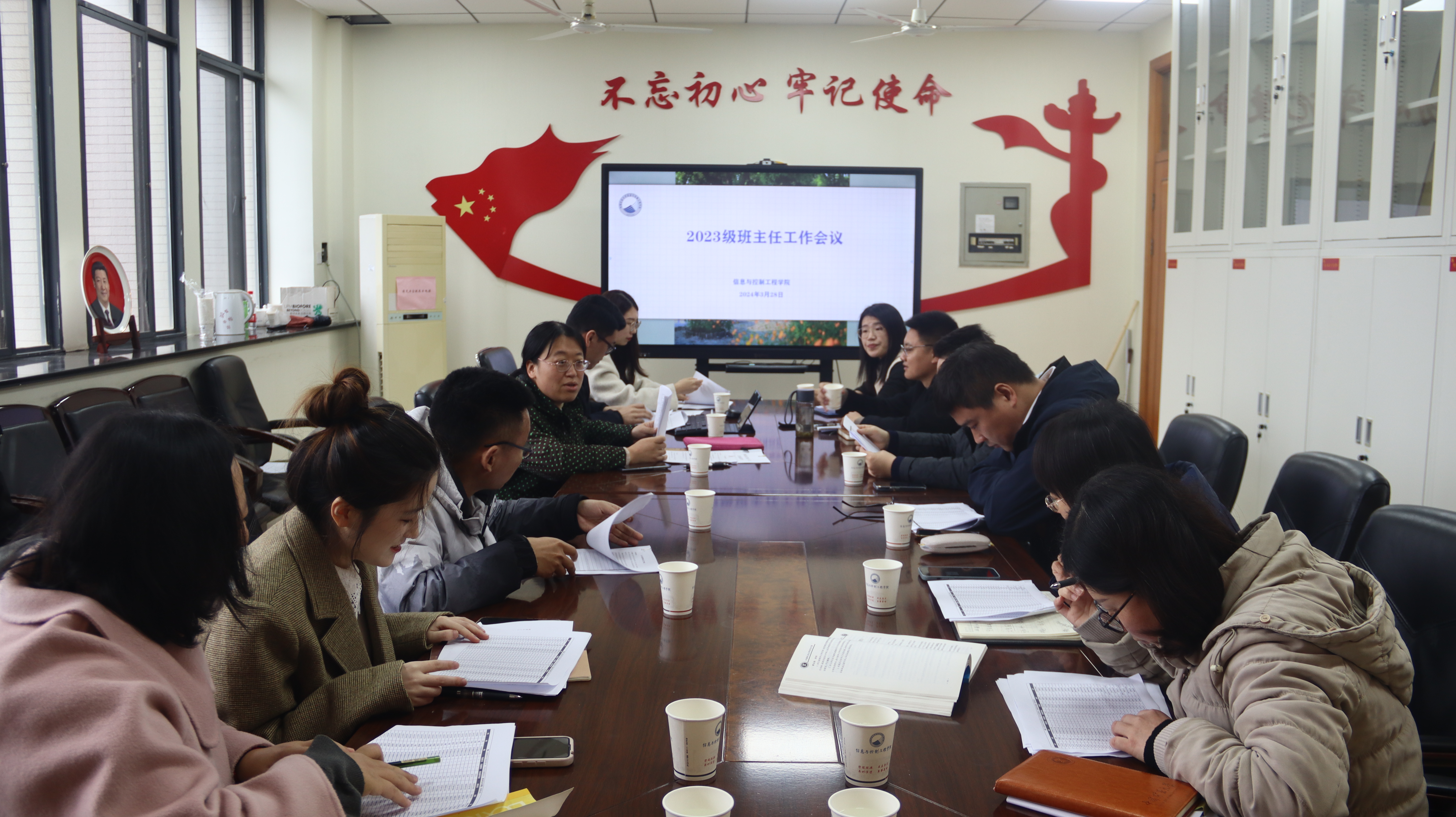 在信控楼B313会议室召开2023级班主任工作会议,2023级班主任老师和辅导员老师参加会议。会议由学院党委副书记翟文艳主持。