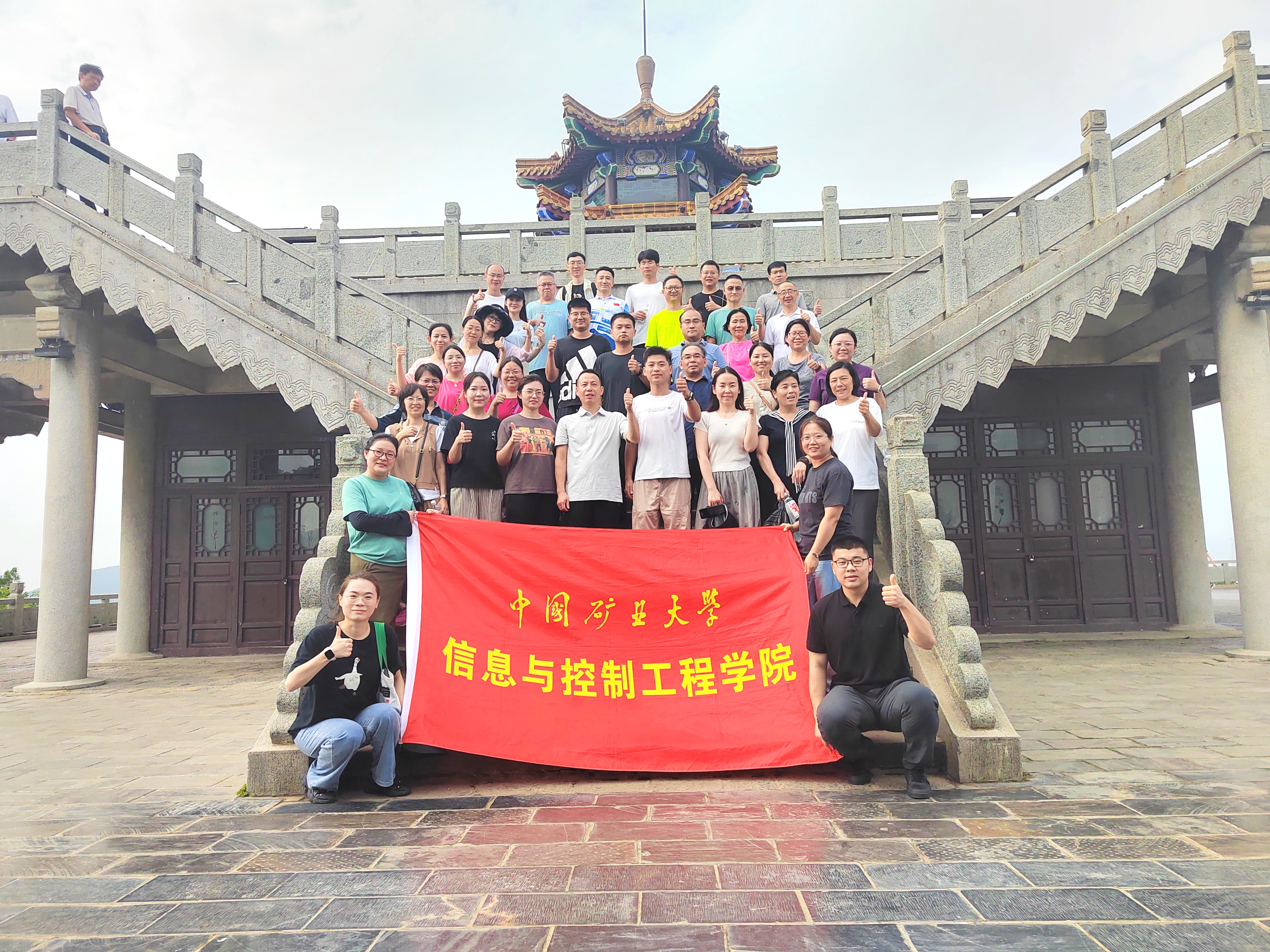 旭日初升,教职工一边拾级而上,一边交流一年来在科研、教学、人才培养和管理服务等方面的收获与体会,畅谈职业发展,共话美好未来。老师们沿着蜿蜒曲道,一鼓作气爬上了云龙山的最高地——观景台。站在云龙山地势最高之处,俯瞰云龙湖,瞭望东方明珠的母塔——徐州电视塔,吹着山顶上的风,临栏远眺,全城美景一览无余,心情美不胜收。