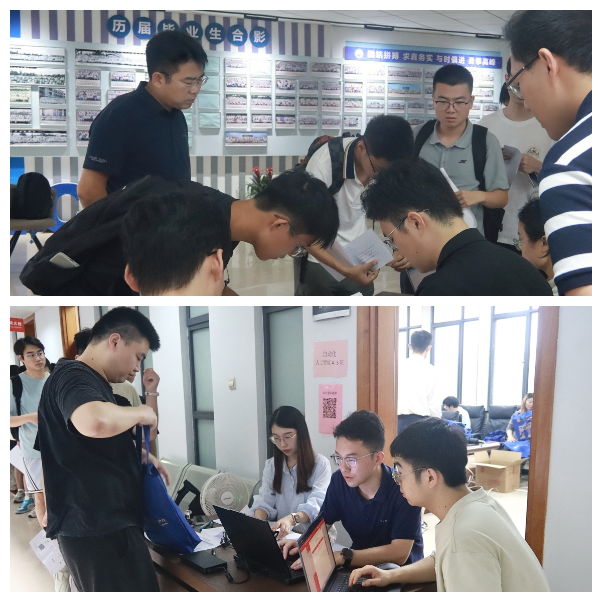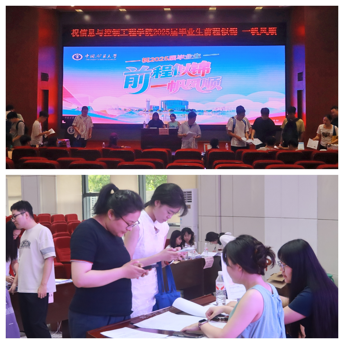 分别在学院楼A101报告厅和B区三层办公区,为2025届毕业研究生和毕业本科生集中办理毕业离校手续。