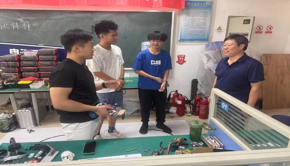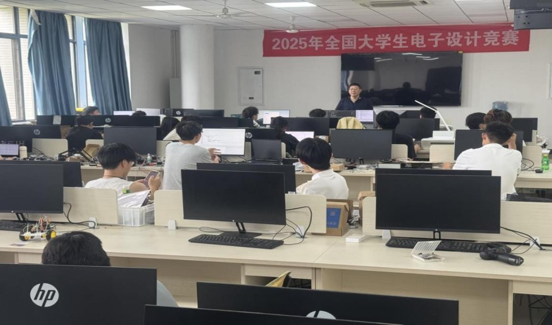 将学科竞赛作为提升学生实践创新能力的重要抓手,以赛促教,以赛促学,以赛促练,以赛促创。2025年全国大学生电子设计竞赛备赛期间,学院高度重视,全力做好赛事组织保障工作。指导教师袁小平教授组织赛前动员大会,开展系列讲座,指导电子协会举办冬令营、校内选拔赛和电子设计基础技能培训等。汤中于、张道明、谢龙龙等教师共同做好竞赛的组织保障。