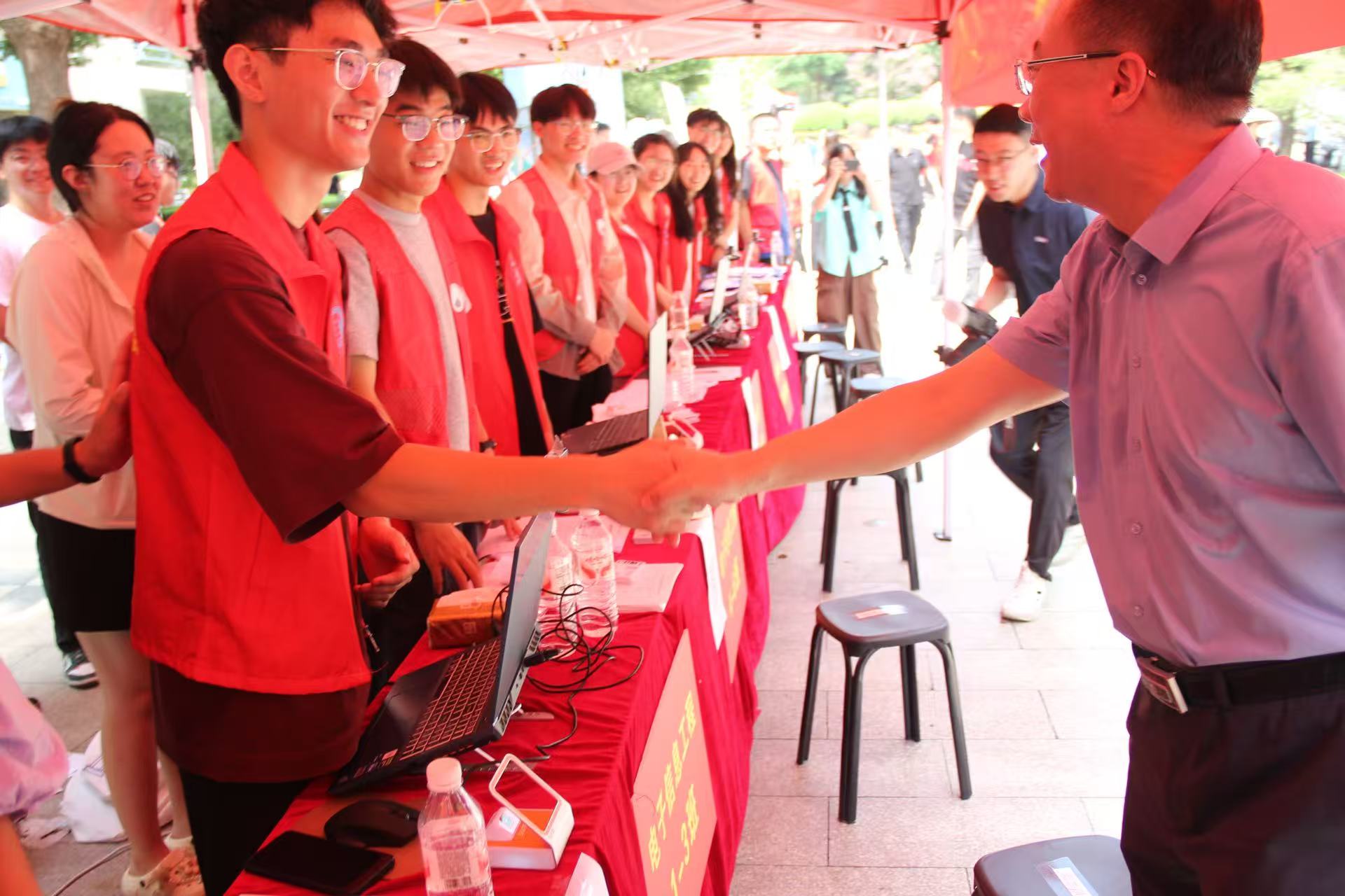迎新期间,校长赵宏伟和学校相关职能部门负责人莅临学院迎新工作点,亲切慰问迎新师生。学院党委书记程德强等领导前往迎新现场,检查准备工作和报到进展,并向2025级新同学表示热烈欢迎。