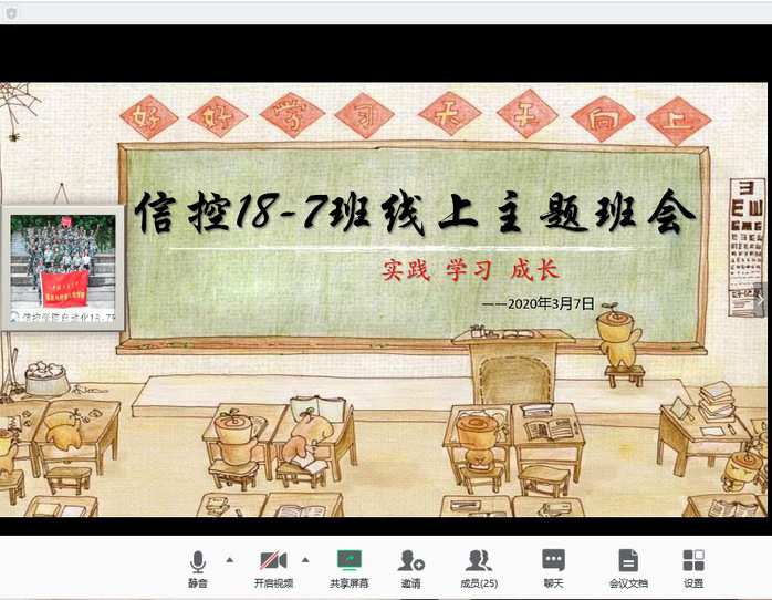 自动化类2018-07班举行线上“实践、学习、成长”主题班会。本次班会由班长王玉杰主持,班主任朱美强老师、班级导师刘硕出席本次班会,七班全体同学参加。