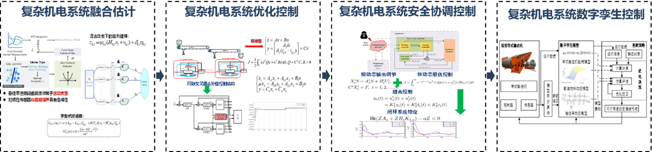 面向自主无人平台、大型矿山装备等复杂机电系统存在感知和检测精度不足、网络攻击风险防御不够、多子系统协调控制能力不强等亟待解决的行业痛点问题,提出了不确定环境下复杂机电系统鲁棒融合估计算法,开发了刚-柔耦合跨尺度协同优化控制算法,建立形成了深度融合感知智能、控制智能与决策智能的复杂机电系统智能感知与优化控制理论框架和技术体系,并进行了工业现场应用。研究成果先后获得2022年中国煤炭工业协会科学技术二等奖、2023年中国煤炭工业协会科学技术二等奖、2022年江苏省自动化学会科学技术二等奖等科研奖励。