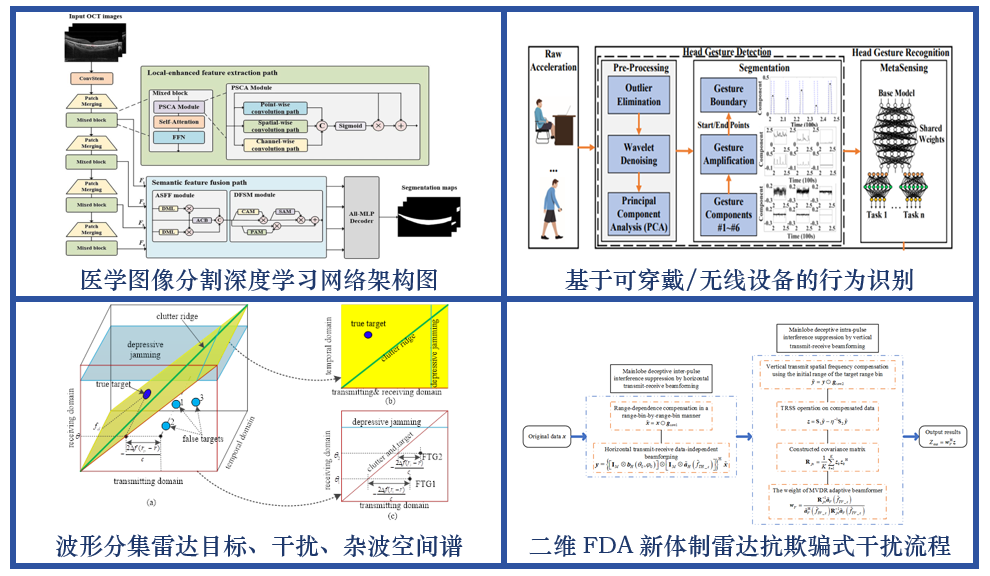 针对工业物联网与精准医疗等民用领域,以及预警探测等军事领域的场景与目标感知需求,开展稀疏样本动态推理与自适应迁移学习、多模态医学图像智能处理,以及复杂环境雷达智能感知等理论与技术研究。研究工业物联网领域的多源传感器数据融合技术,提出轻量化动态推理和少样本迁移学习框架,解决噪声干扰下的稀疏样本学习问题,实现资源受限环境中的高效鲁棒感知;研发了系列医学图像AI算法与软件,构建多模态医学图像融合分析平台,建立多维度、多特征医学图像分析机制,实现高准确度医学图像智能处理与应用;聚焦复杂电磁/杂波环境下的雷达目标探测,突破干扰博弈对抗、分布式/MIMO/FDA新体制雷达、多维信号处理、SAR成像与智能识别等关键技术,成果应用于多型国家重点装备。