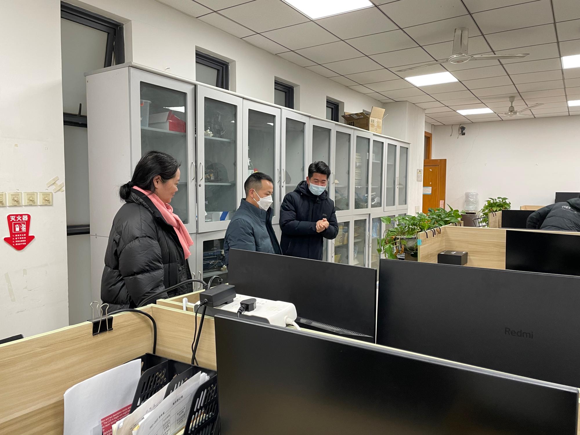 1月6日下午,副院长陈平与办公室、实验中心相关人员,对学院办公室、实验室和师生工作室等开展安全检查。他对办公室人员关好门窗、关闭电源等进行了提醒,询问了学生实验进展和离校安排等情况,并对做好实验室人员进出登记、环境卫生和用电安全等提出了要求,并查看了假期关闭实验室封条张贴等情况。