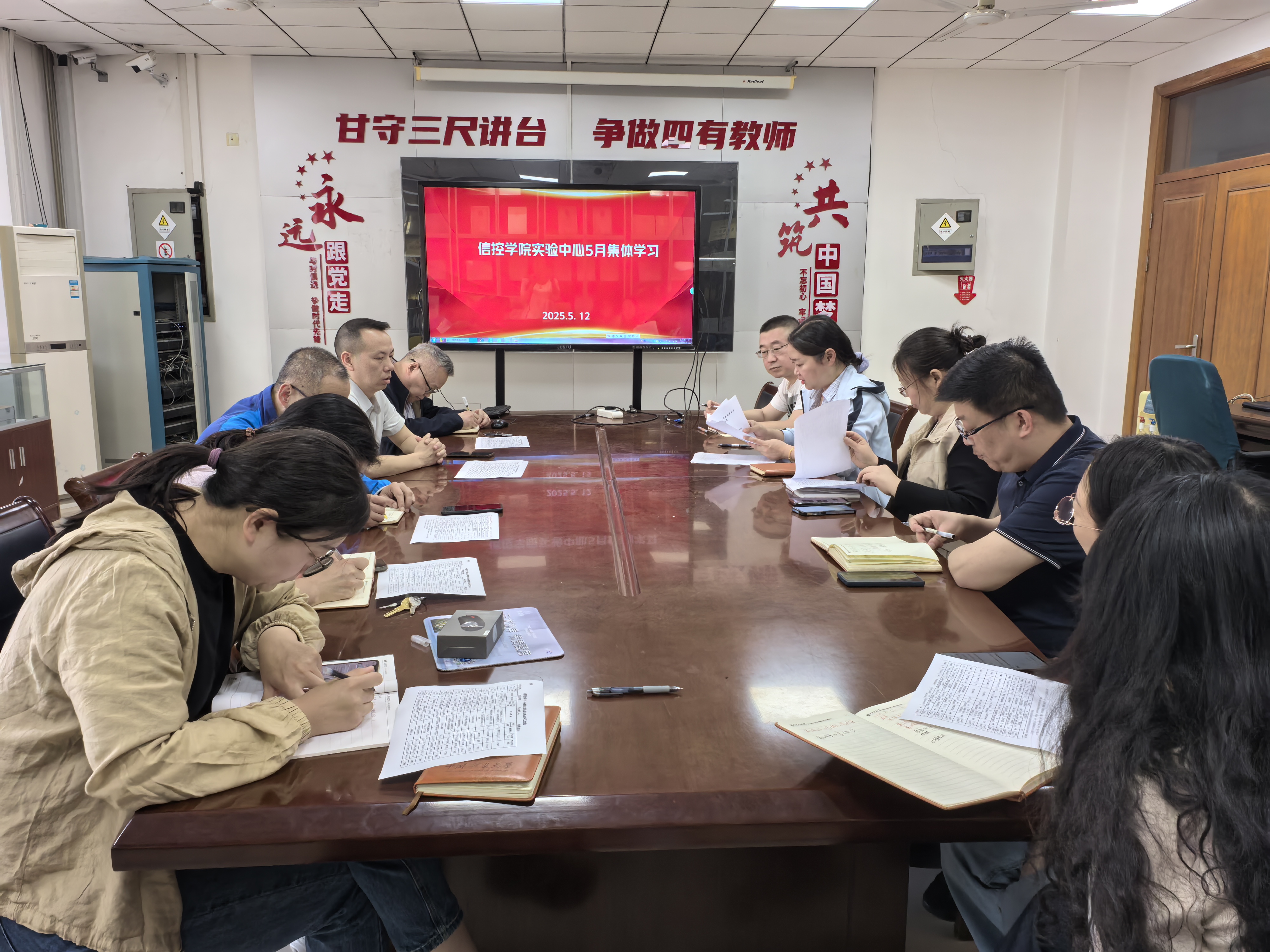 实验中心在A408会议室举行5月份集体学习。副院长陈平、实验中心全体成员参加会议。会议由实验中心主任张晓春主持。