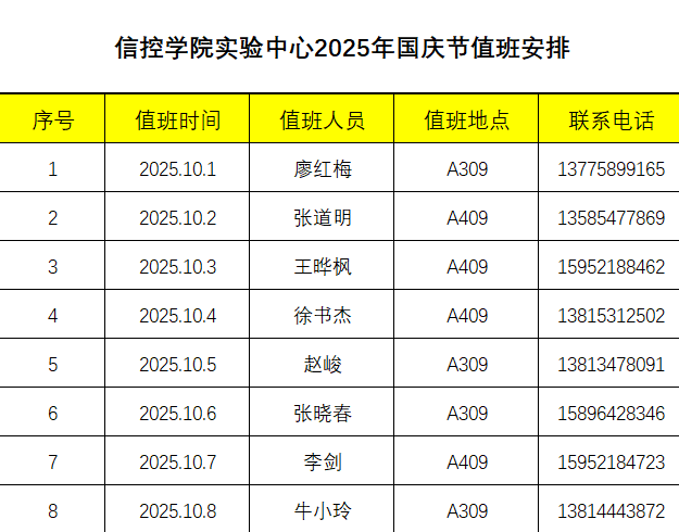 h动漫网 实验中心2025年国庆节值班安排